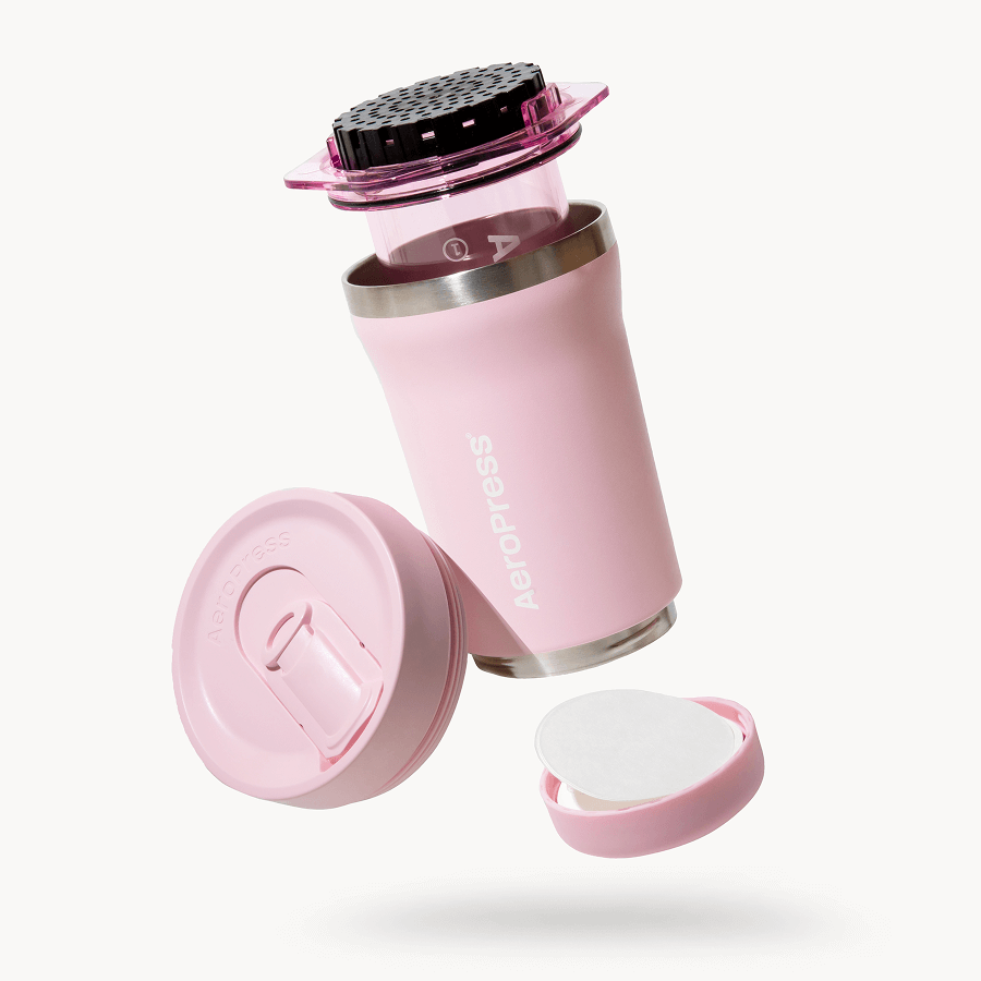 The AeroPress Go Plus is the ultimate travel version of our iconic coffee press – the same patented 3 in 1 brewing technology that gives a smooth. full-bodied flavor without grit or bitterness. The included 16 oz travel tumbler is made of double wall. vacuum-insulated 18/8 stainless steel. features a splash-resistant. magnetic slider lid and built-in filter holder. and serves three purposes: brewing vessel. drinking cup. and carrying case.