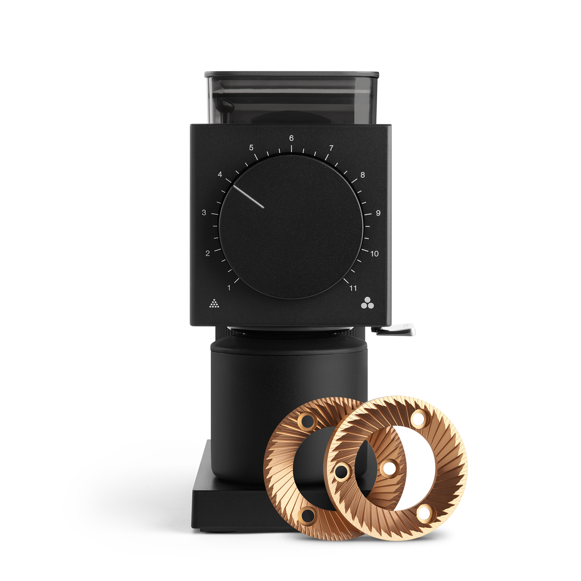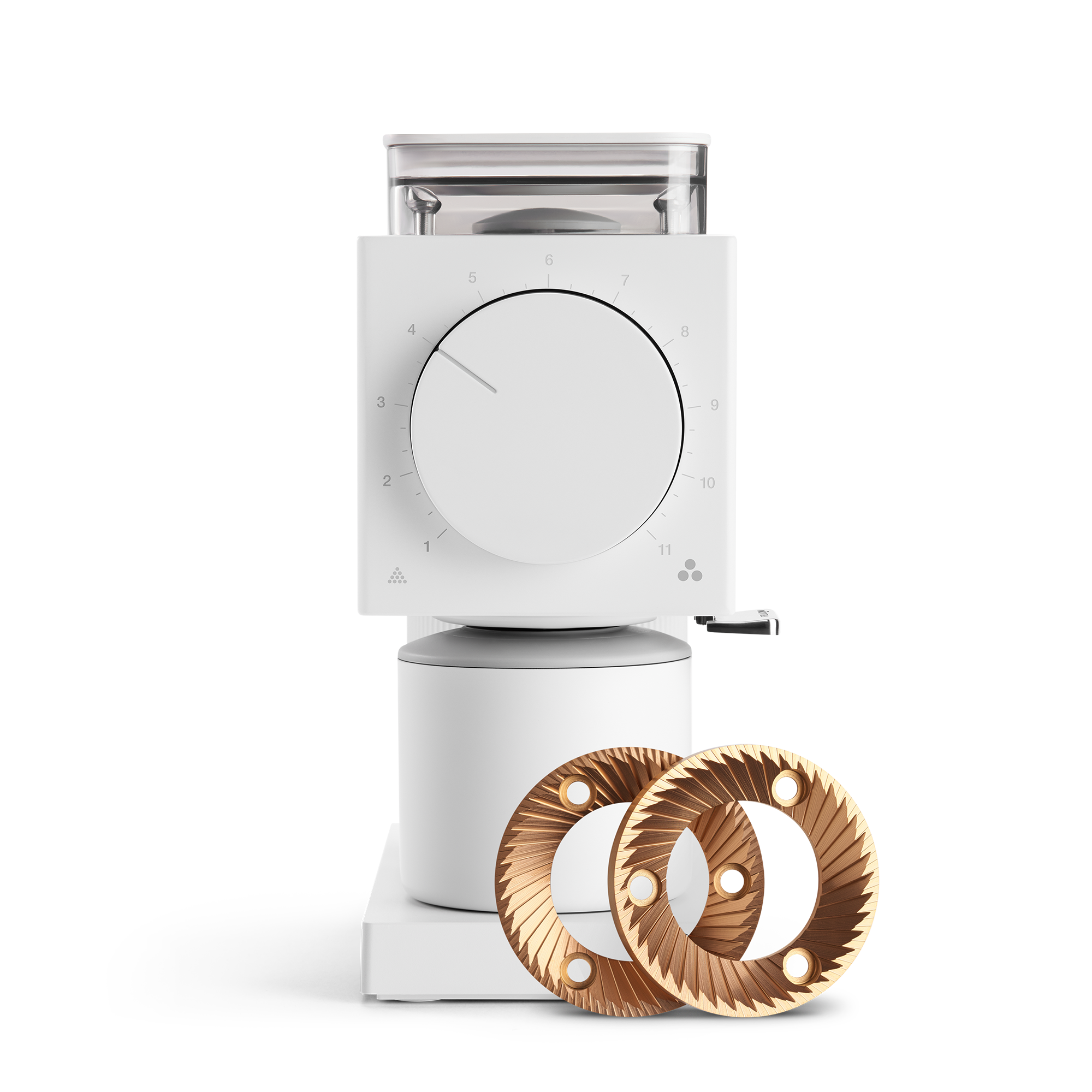 Fellow now offers Ode Brew Grinder with two types of pre-installed burrs. The original professional-grade stainless steel 64 mm flat burrs offer 31 settings. With the same 31 settings. the premium Red Speed SSP Burrs allow you to access a finer range of grind settings for dialing in your pour-over recipes and have an extended lifespan.